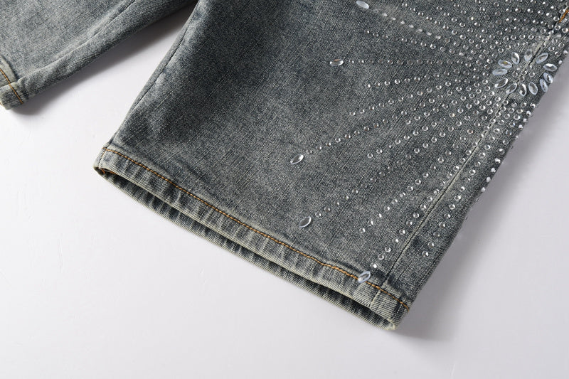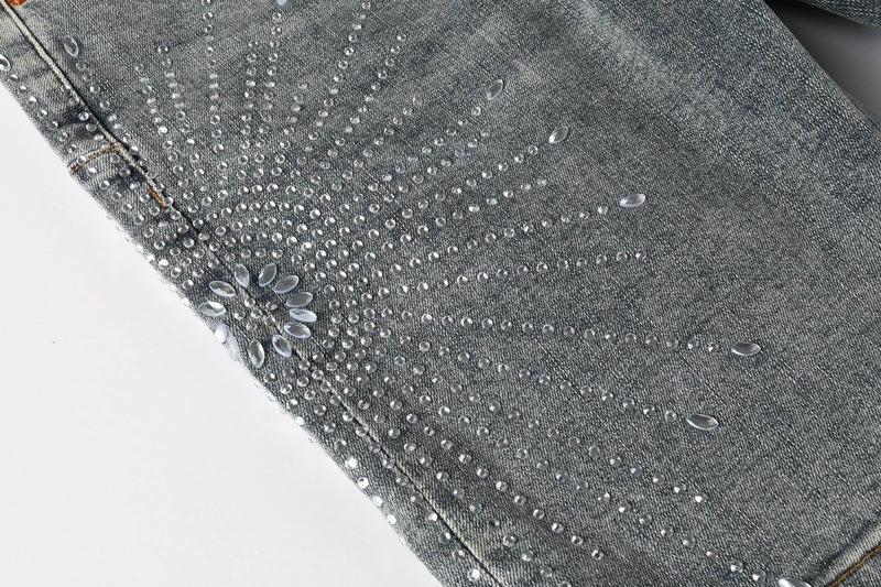 Purple Brand Crystal Diamond Denim Shorts #5093