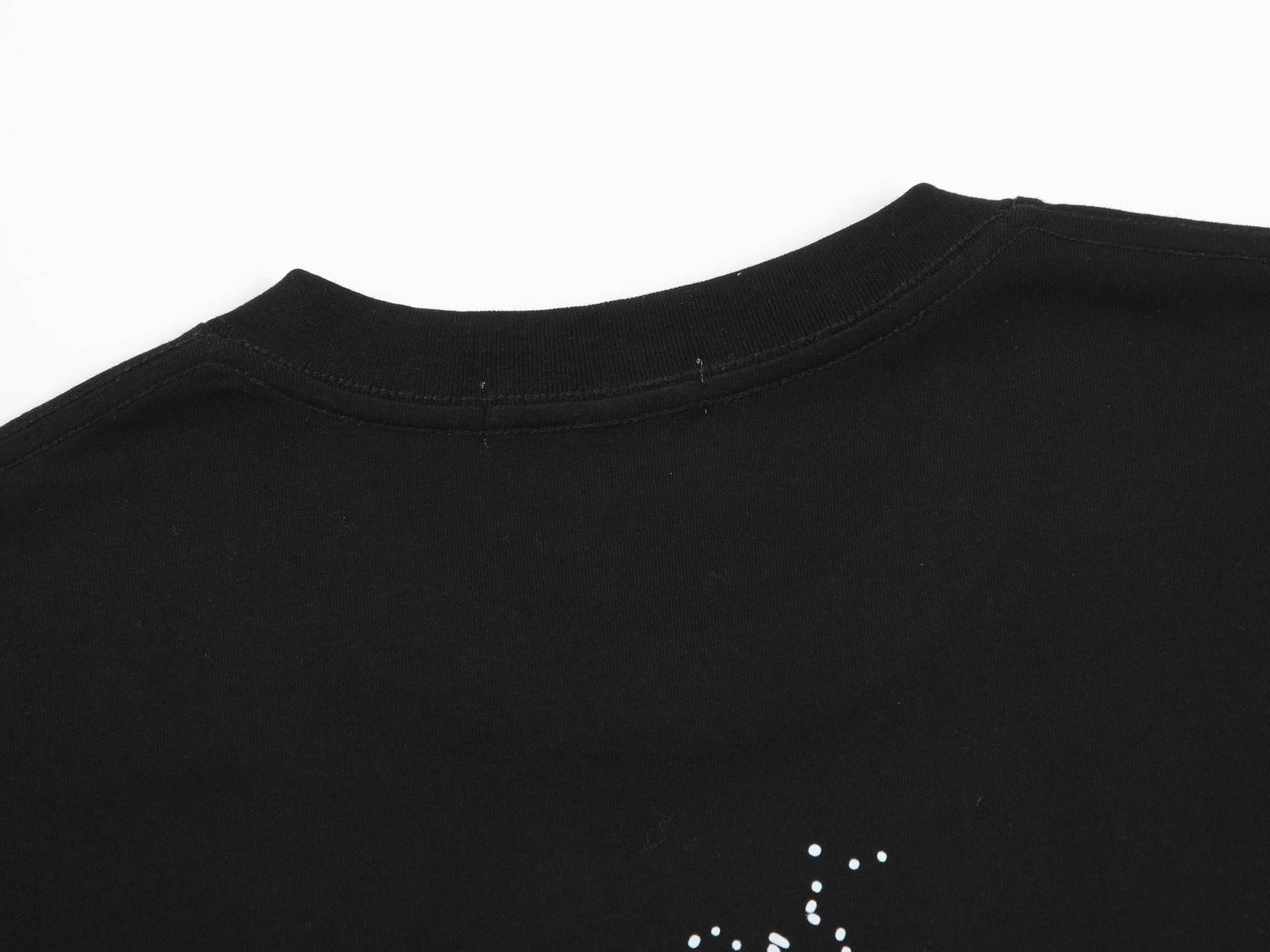 Paint-streaked logo art splashes and smears randomly on a T-shirt made of inky-black cotton in a fit that slouches like a comfortable old favorite.