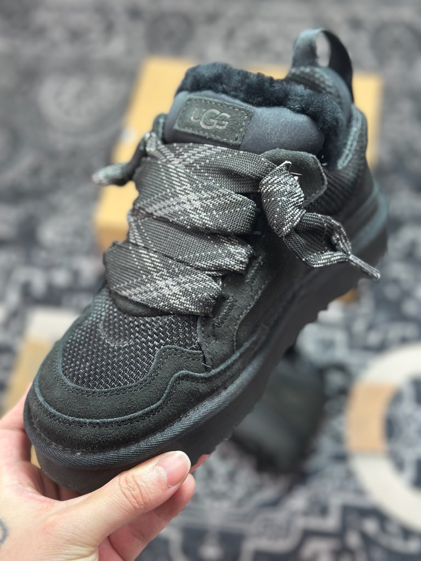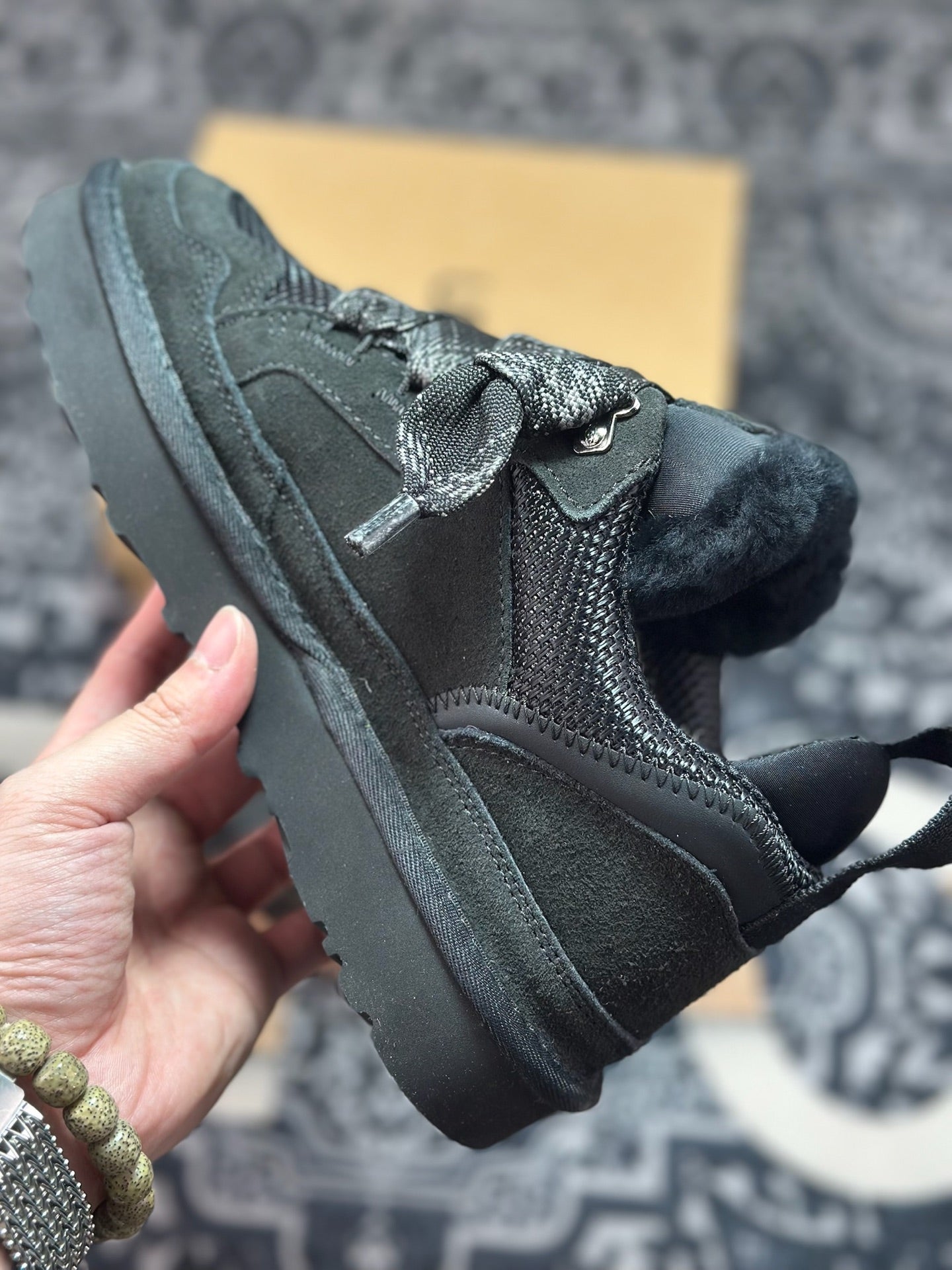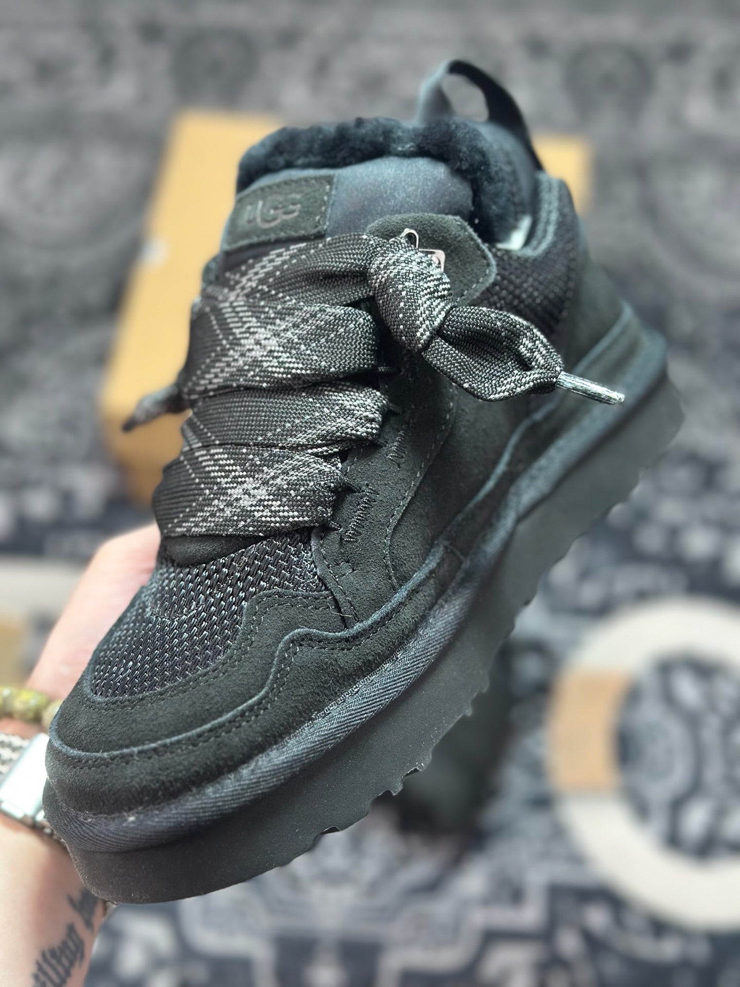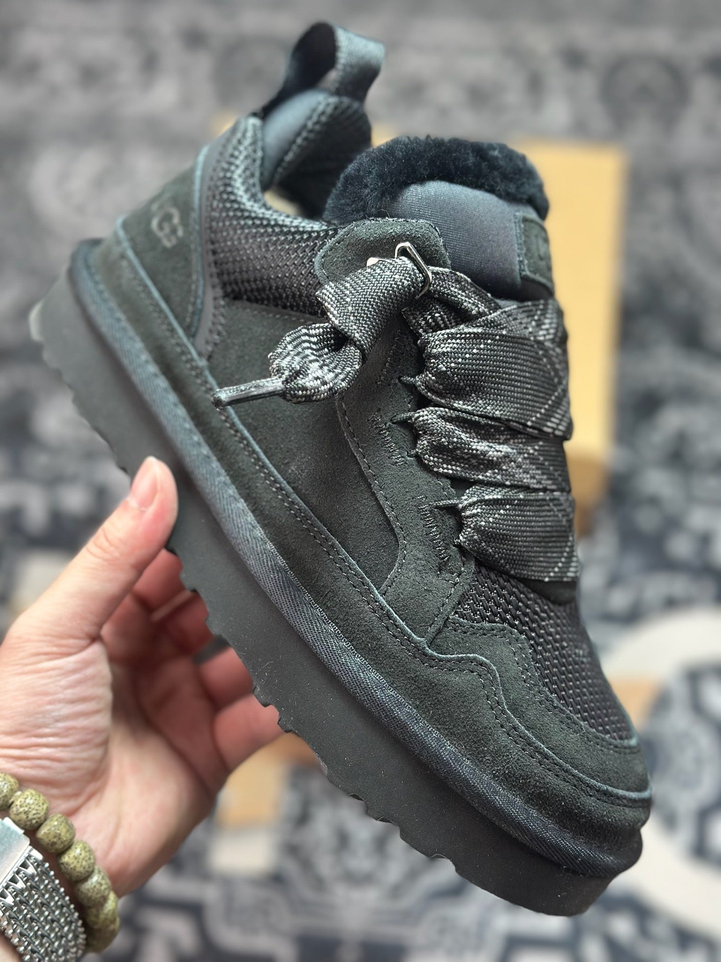 * Distinctive thick lace closure adds a contemporary aesthetic.